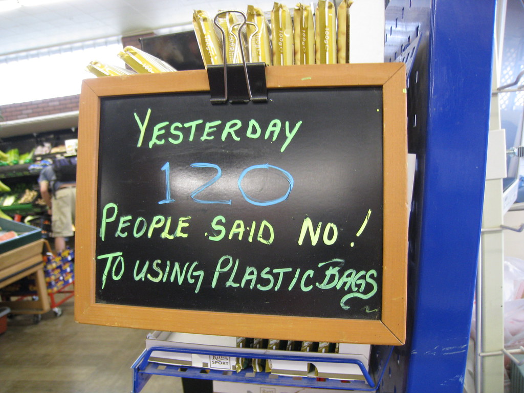 Soziale Normen spielen beim Plastikkonsum eine Rolle („Gestern haben 120 Personen Nein zu Plastiktüten gesagt!“).