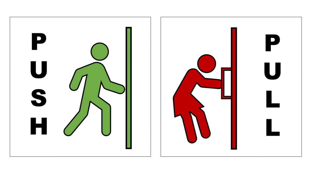 Bild 3: Unser Alltag ist voll von beständigen Verbindungen zwischen Reizen und Reaktionen: Im angloamerikanischen Raum signalisieren Türgriffe eine „Ziehen“ Reaktion; fehlende Türgriffe signalisieren eine „Drücken“ Reaktion.Bild 3: Unser Alltag ist voll von beständigen Verbindungen zwischen Reizen und Reaktionen: Im angloamerikanischen Raum signalisieren Türgriffe eine „Ziehen“ Reaktion; fehlende Türgriffe signalisieren eine „Drücken“ Reaktion.