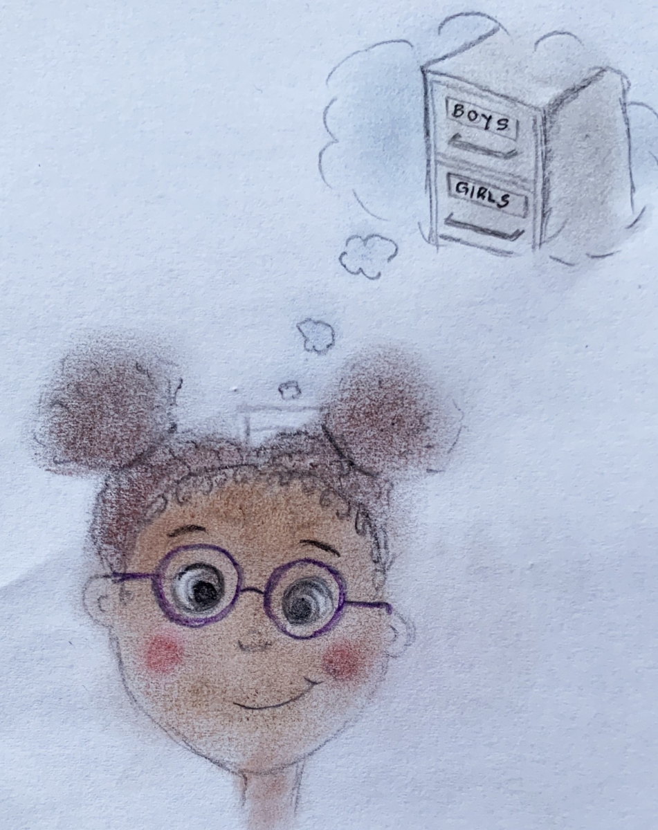 Zum Beispiel gibt es die Schublade Mädchen. Oft wird von Mädchen angenommen, dass sie gerne mit Puppen spielen. So könnte es jetzt sein, dass wir Kinder in die Schublade Mädchen einsortieren und automatische davon ausgehen, dass sie alle gerne mit Puppen spielen. Aber nur weil manche Mädchen gerne mit Puppen spielen, heißt das nicht, dass alle Mädchen gerne mit Puppen spielen. Viele Mädchen spielen auch gerne mit Dinos oder Lego und interessieren sich gar nicht für Puppen.
